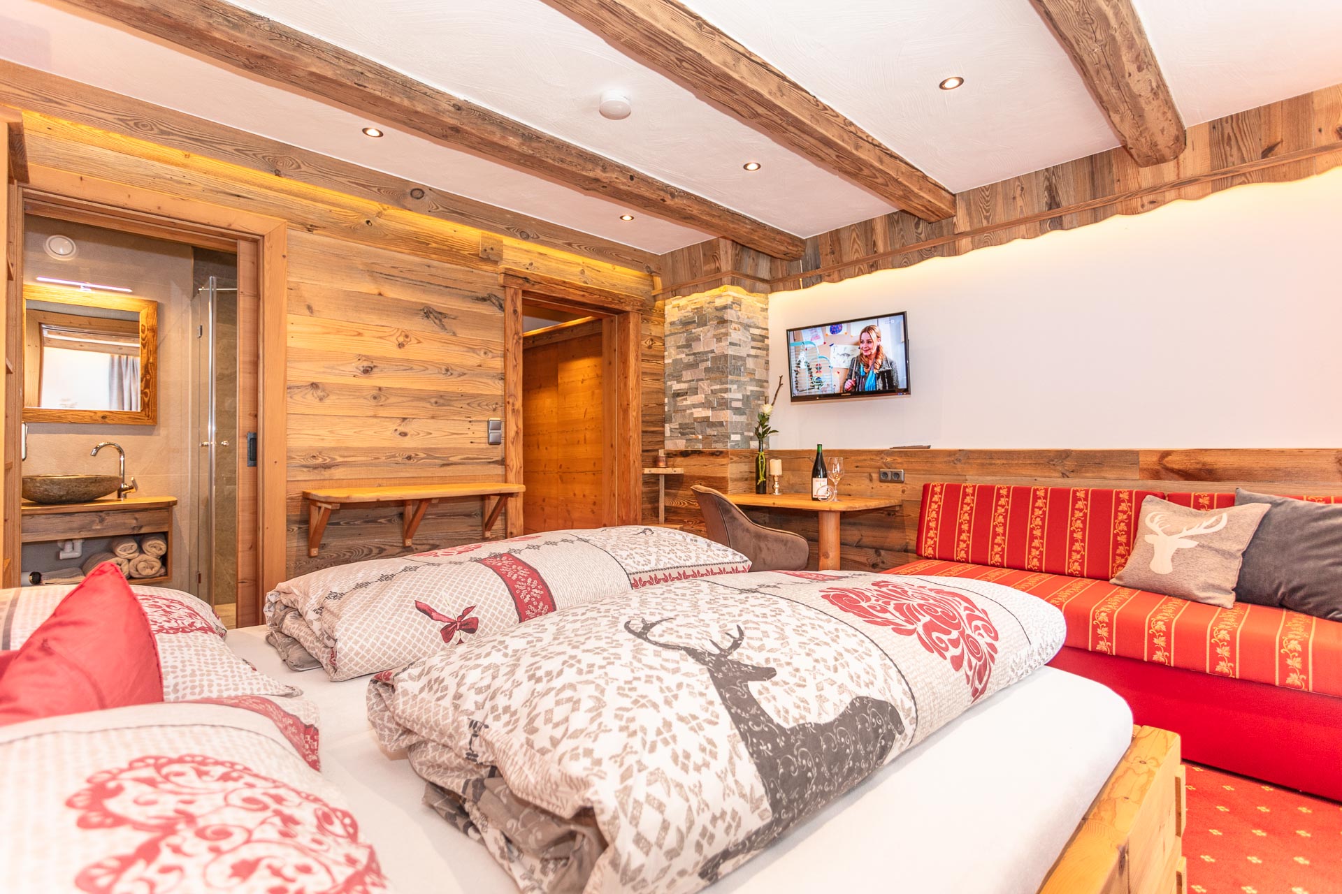 Unsere Pension mit Frühstück bietet 10 Doppelzimmer, in denen Sie nach ausgiebigen Wander- oder Skitagen wieder Energie tanken können. Die Räume sind modern eingerichtet und bieten erholsame Nächte in weichen Boxspringbetten. Unsere Unterkünfte verfügen allesamt über einen Sonnenbalkon mit Blick auf die Berge. Wenn Sie nach einem Ausflug wieder zurück in Ihr Zimmer kehren, genießen Sie den Abend in unserer Sauna und Infrarotkabine.